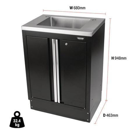 BUNKER® Modular Floor Cabinet with Sink, 2 Door, 680mm