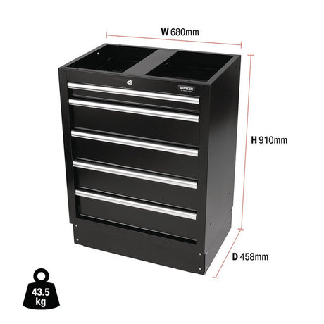 BUNKER® Modular Floor Cabinet, 5 Drawer, 680mm
