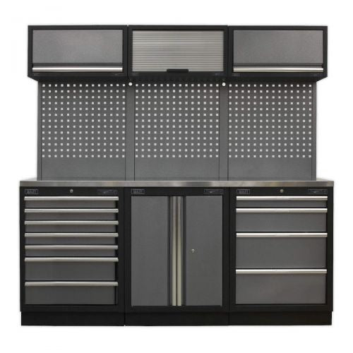 Sealey's Superline Pro 6 Cabinet Set is suitable for workshops or garage environments. A perfect workstation for the hobbyist or for industrial use. Comprehensive tool storage, modular back panels with hanging holes for quick and easy access to tools. High quality locks with 3-point locking mechanism (except overhead cabinets).